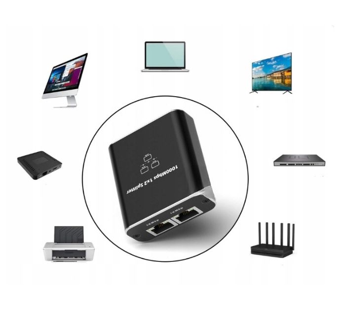 Adapter Splitter Mini Switch - LAN Ethernet RJ45 Splitter (2xRJ45 1000M)